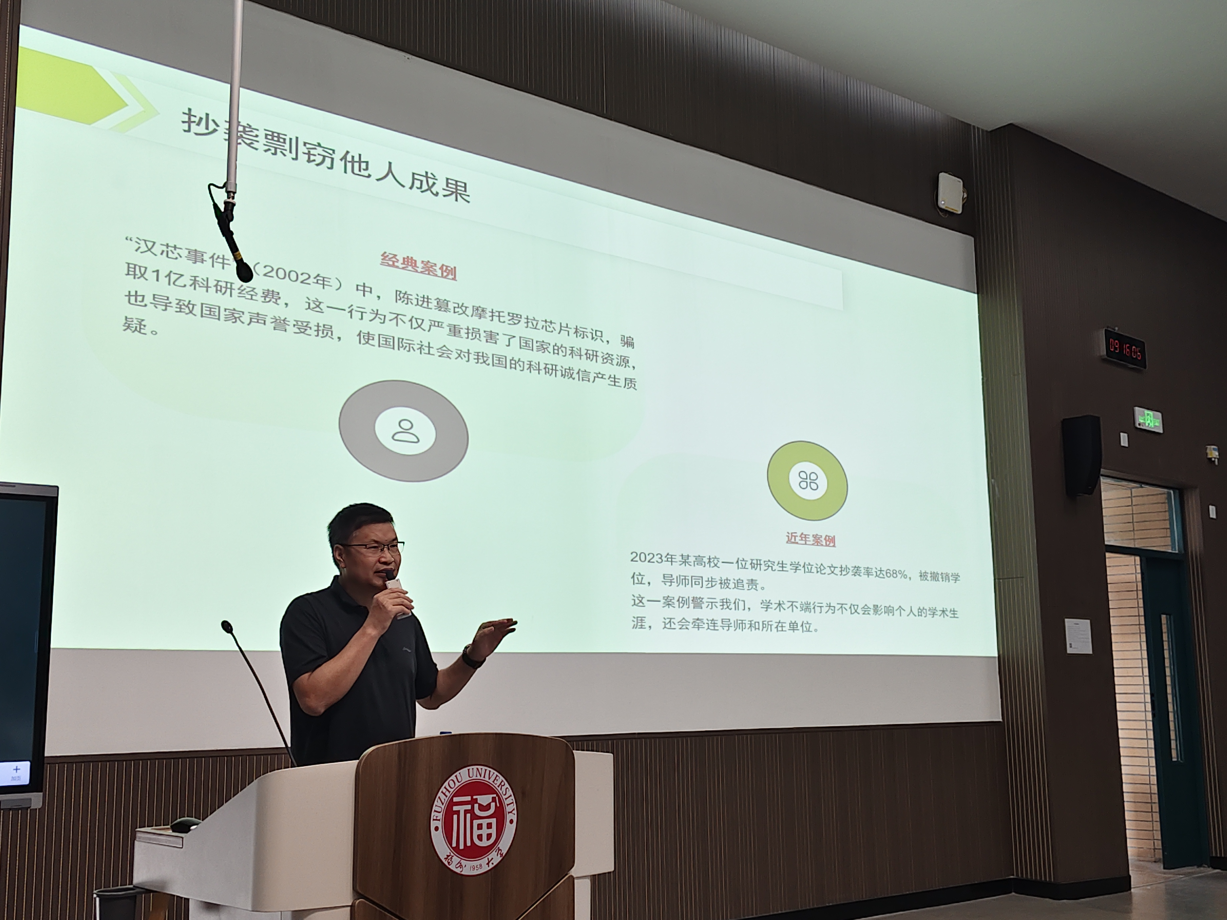 为弘扬科学精神,筑牢学术诚信基石,9月11日早上,石贤爱副院长在旗山校区东3-100为研究生新生开展了“坚守学术底线,培育科研品格”为题的科学道德与学术诚信教育讲座。石院长从学术道德的核心内涵与时代要求、学术不端的类型与典型案例、研究生全流程学术规范等,多方面的剖析了学术不端行为的危害,强调了遵守学术规范、恪守科研伦理是每一位科研工作者的基本准则,石院长希望广大研究生新生从入门伊始就树立崇高的学术理想,培养严谨求实的科学态度。