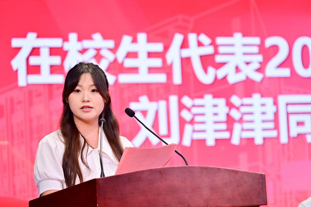 2022级食品科学与工程专业本科生刘津津作为在校生代表发言,结合三年深耕学业、攻坚科研与实践服务等经历,分享成长感悟。她表示,性爱影片