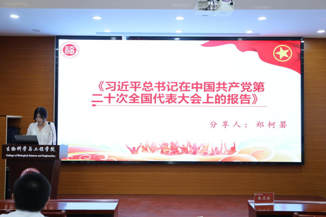 学习研讨会环节,三名本科生学生骨干聚焦《习近平总书记给福建农林大学全体师生回信》、《习近平总书记在中国共产党第二十次全国代表大会上的报告》、《在中华全国学生联合会第二十八大代表大会上的工作报告》等重要报告,围绕习近平总书记“深耕‘三农’”的殷切嘱托,以及党的二十大报告中“中国式现代化”的实践问题,结合自身成长与实践经历,分享了自己的学习感悟。