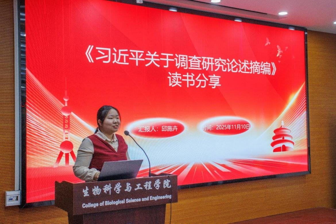 为进一步深化理论学习、凝聚思想共识,读书分享会随之拉开帷幕。多名研究生学生骨干围绕《论党的青年工作》、《习近平与大学生朋友们、》《闽山闽水物华新—习近平福建足迹》等经典著作,结合自身学习工作经历分享阅读心得与思想感悟,进一步深化了对习近平总书记“青年观”的理解与把握。