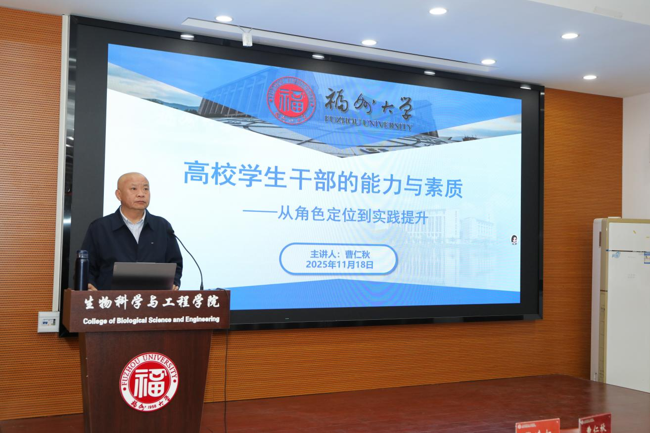 曹仁秋副书记在讲座中首先明确学生干部兼具受教育者与管理者双重身份,指出学生干部只有明确自己的角色与定位,才能要更好引领与服务同学。他结合自己的学习、工作和成长经历,强调学生干部应具备的“六种能力”,处理好“五种关系”,他衷心希望每一位学生干部能在服务同学中同步实现自我成长。